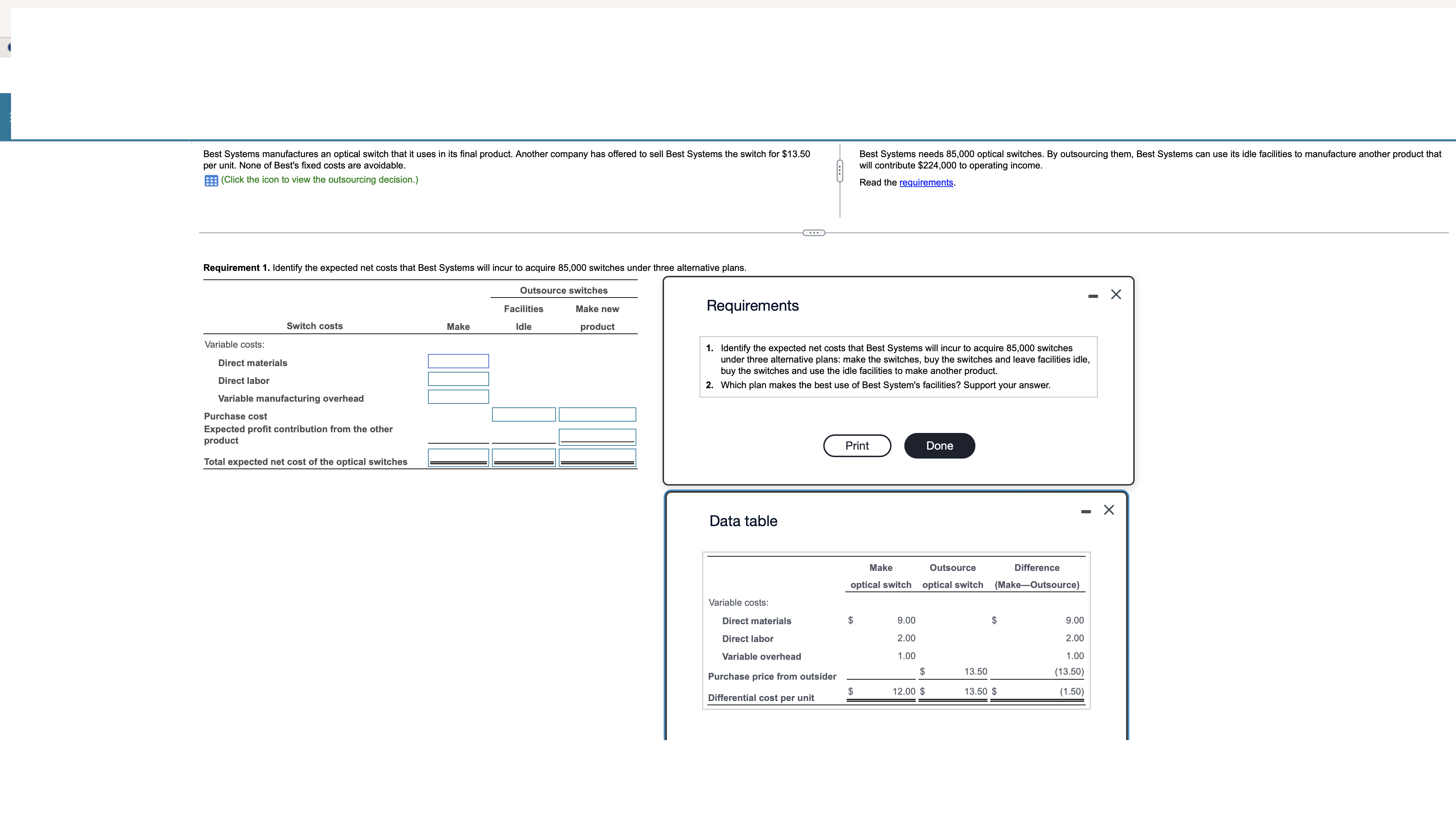 Solved per unit. None of Best's fixed costs are avoidable. 用